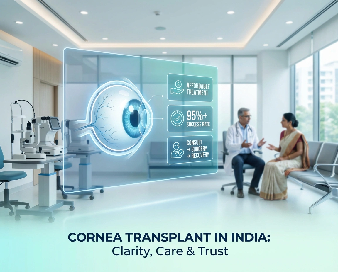 A cornea transplant in India costs ₹70,000–₹1,50,000 ($850–$1,800) saving you 70–90% compared to Australia or the UK at hospitals that meet the same international accreditation standards. With success rates exceeding 90% for common conditions like keratoconus and Fuchs' dystrophy and a well-structured recovery pathway, India is one of the strongest options globally for this procedure.